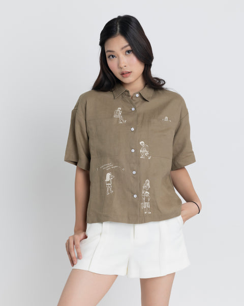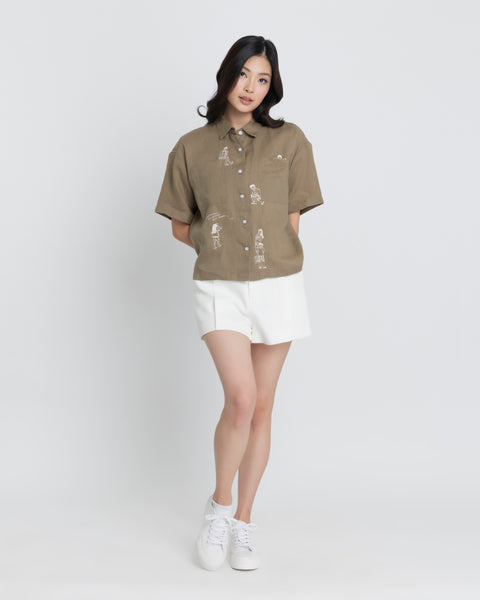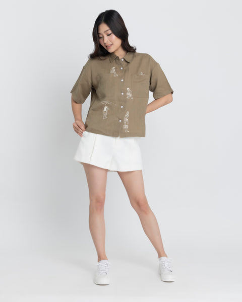 Design: Embroidered. Short-sleeve button down. Oversized Fit.
