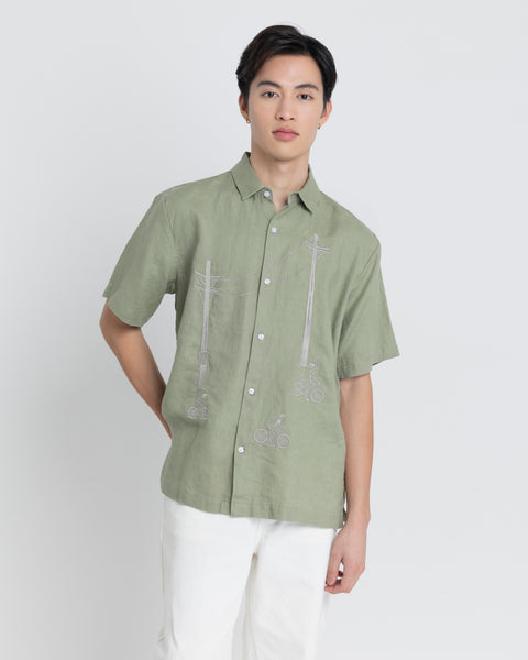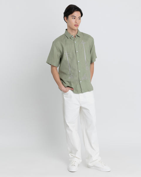Design: Embroidered. Short-sleeve button down. Regular Fit.