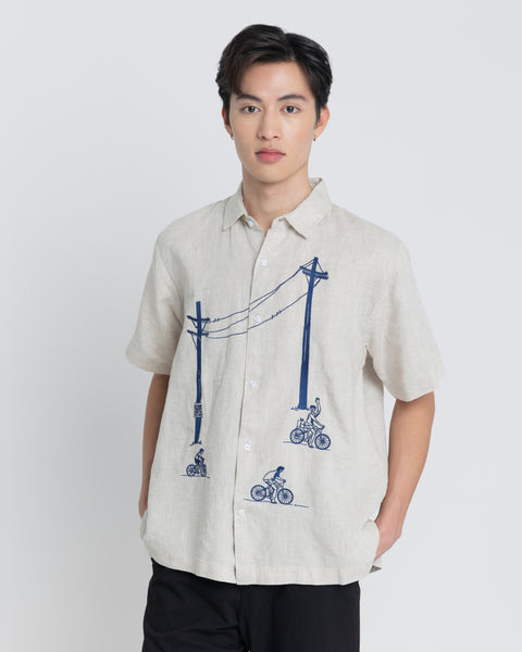 Design: Embroidered. Short-sleeve button down. Regular Fit.