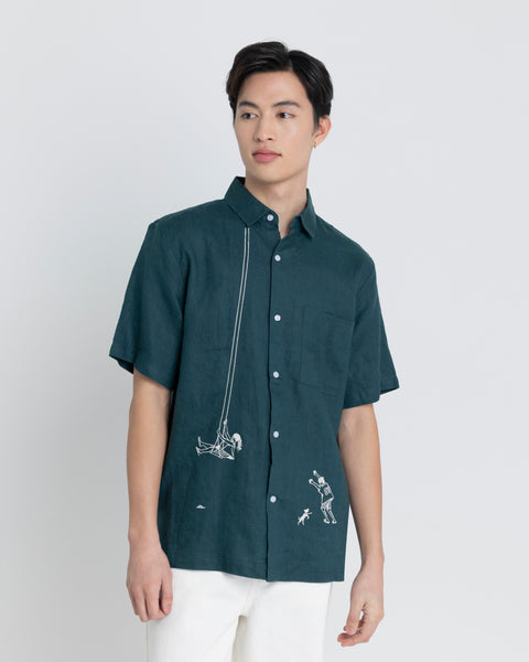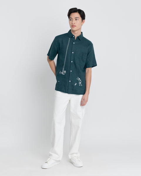 Design: Embroidered. Short-sleeve button down. Regular Fit.