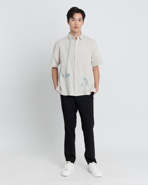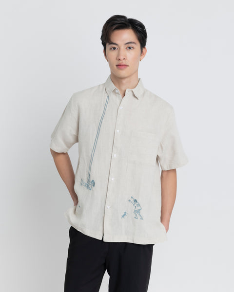 Design: Embroidered. Short-sleeve button down. Regular Fit.