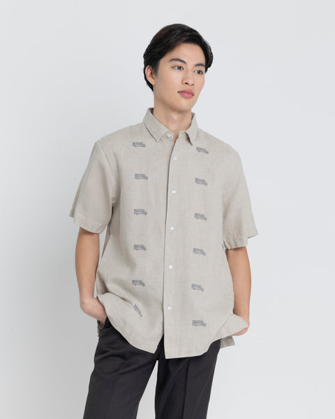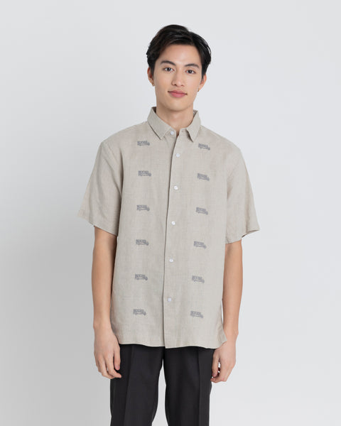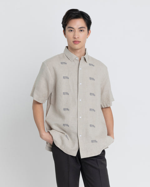 Design: Embroidered. Short-sleeve button down. Regular Fit.