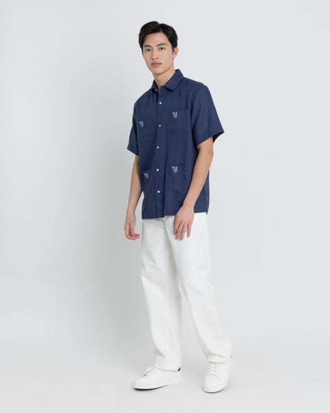 Design: Embroidered. Short-sleeve button down. Regular Fit.