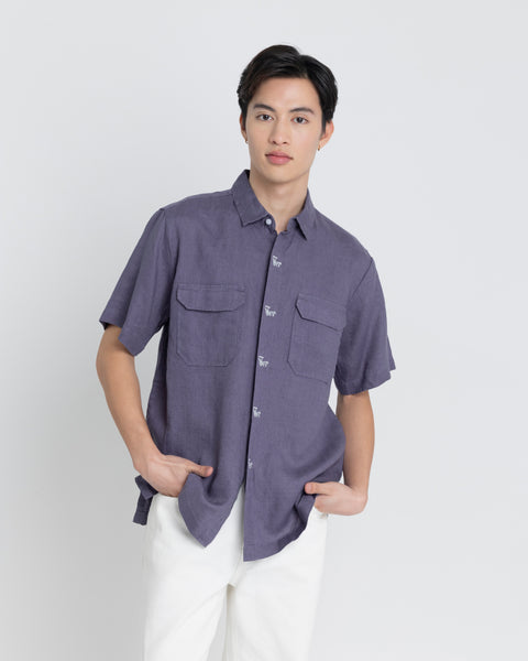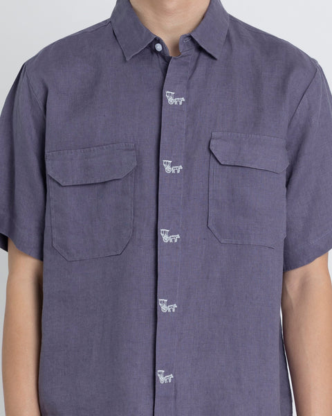 Design: Embroidered. Short-sleeve button down. Regular Fit.