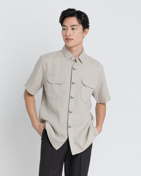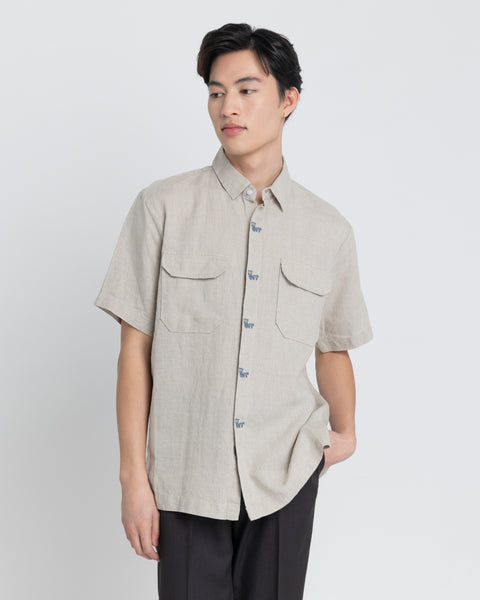 Design: Embroidered. Short-sleeve button down. Regular Fit.