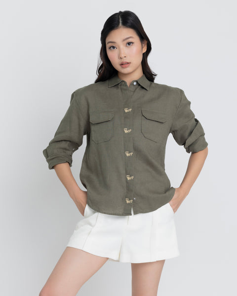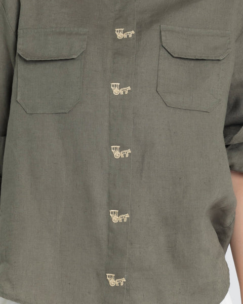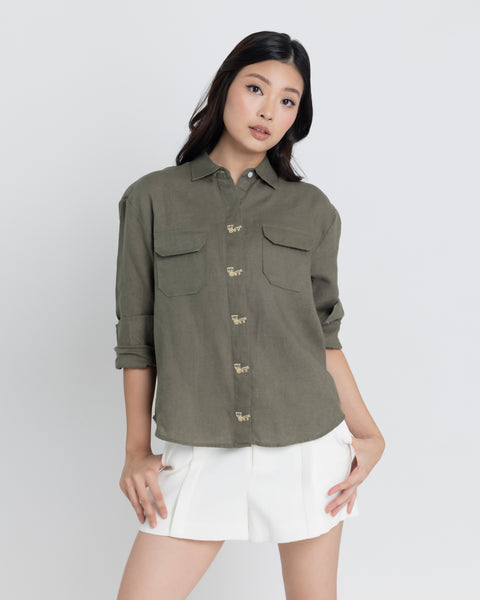 Design: Embroidered. Long-sleeve button down. Regular Fit.