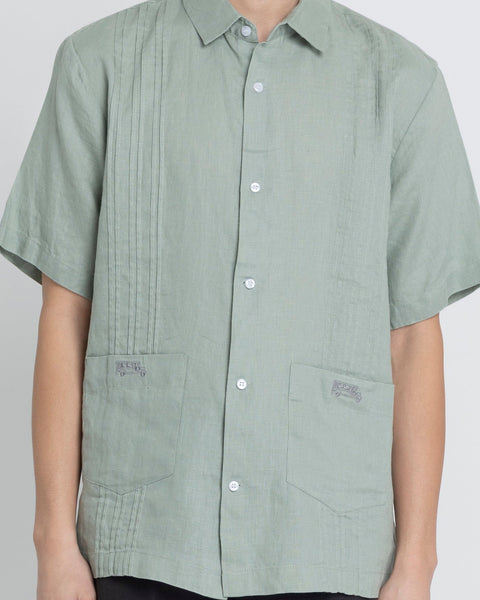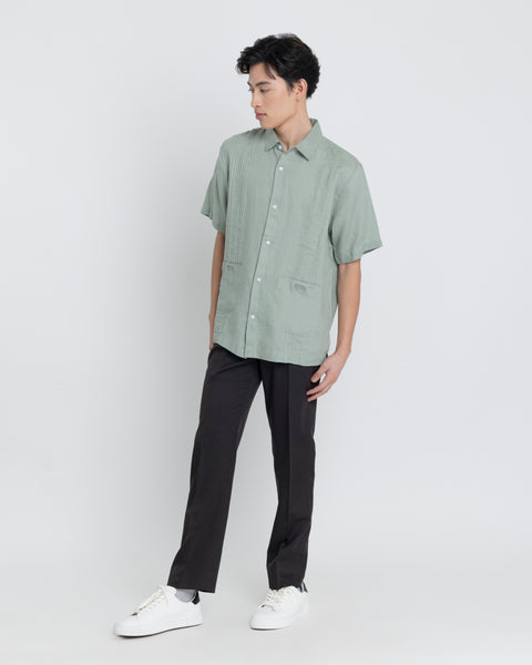 Design: Embroidered. Short-sleeve button down. Regular Fit.