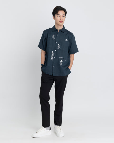Design: Embroidered. Short-sleeve button down. Regular Fit.