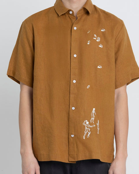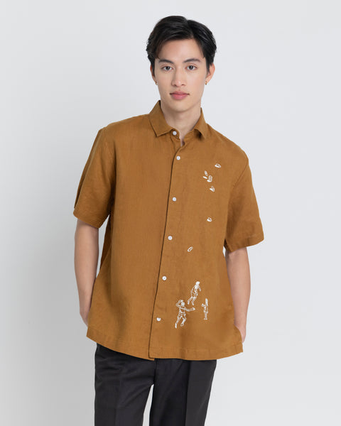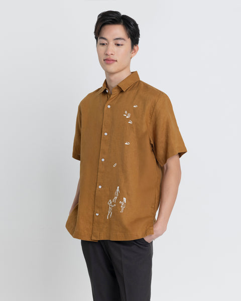 Design: Embroidered. Short-sleeve button down. Regular Fit.